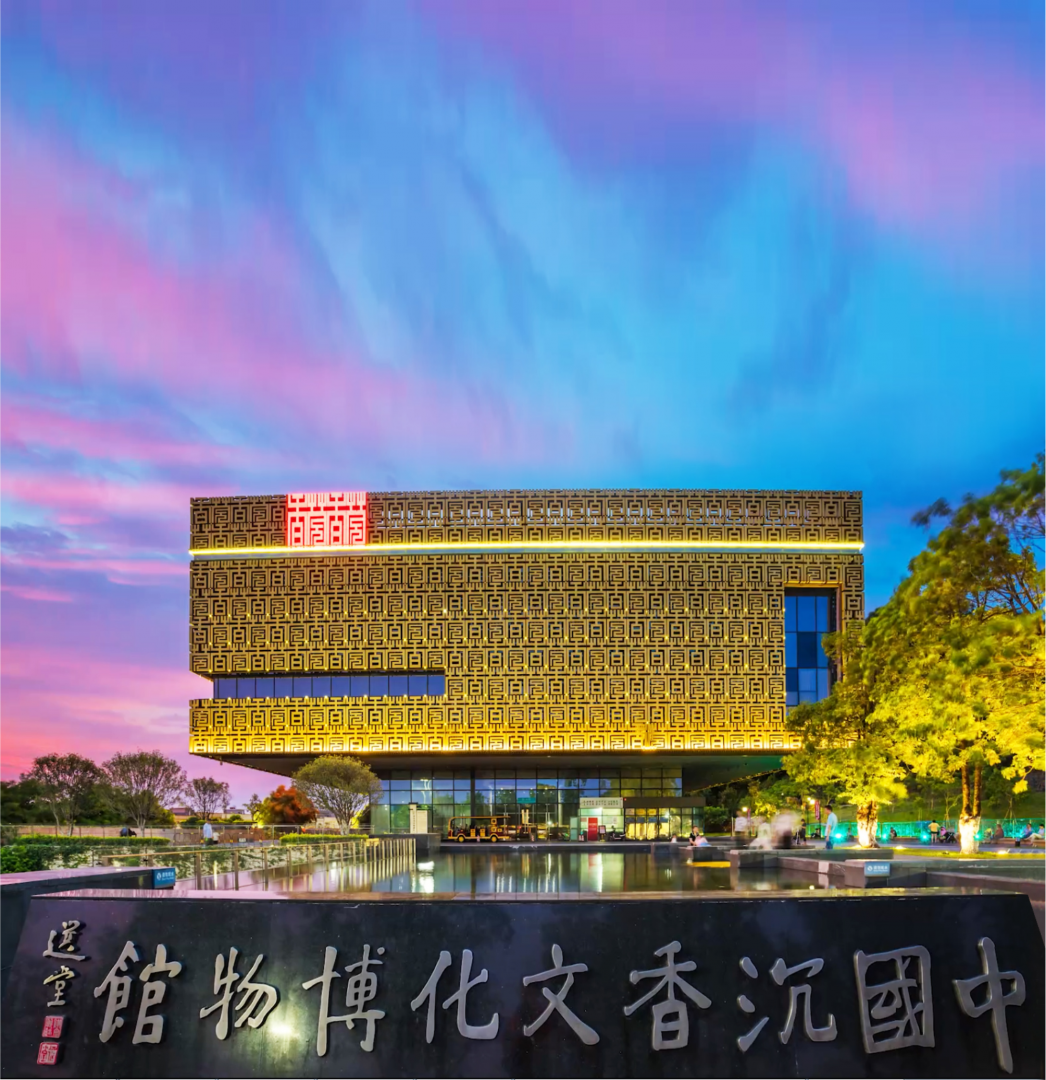 中国沉香文化博物馆坐落在寮步镇的香市公园内,于2014年12月18日面向公众开放,是中国第一座以沉香文化为主题的博物馆,同时也是东南亚地区乃至全球沉香藏品最为丰富的公益性博物馆。博物馆占地8199平方米,总建筑面积约8800平方米,由世博会中国馆设计师、中国工程院院士、华南理工大学建筑学院院长何镜堂主持设计。构思源于古时盛装贡品莞香的“香盒”,并融入香囊以及香炉透孔透气等主要特征,以“莞香”二字的篆体作为表皮肌肤原理,以镂空的手法重新创造出一个做工精美、玲珑剔透的现代香盒,并配以灯光、水、雾等效果的营造,来展示香文化的深刻内涵和意境。我馆由著名国学大师饶宗颐亲自题字:“中国沉香文化博物馆”。