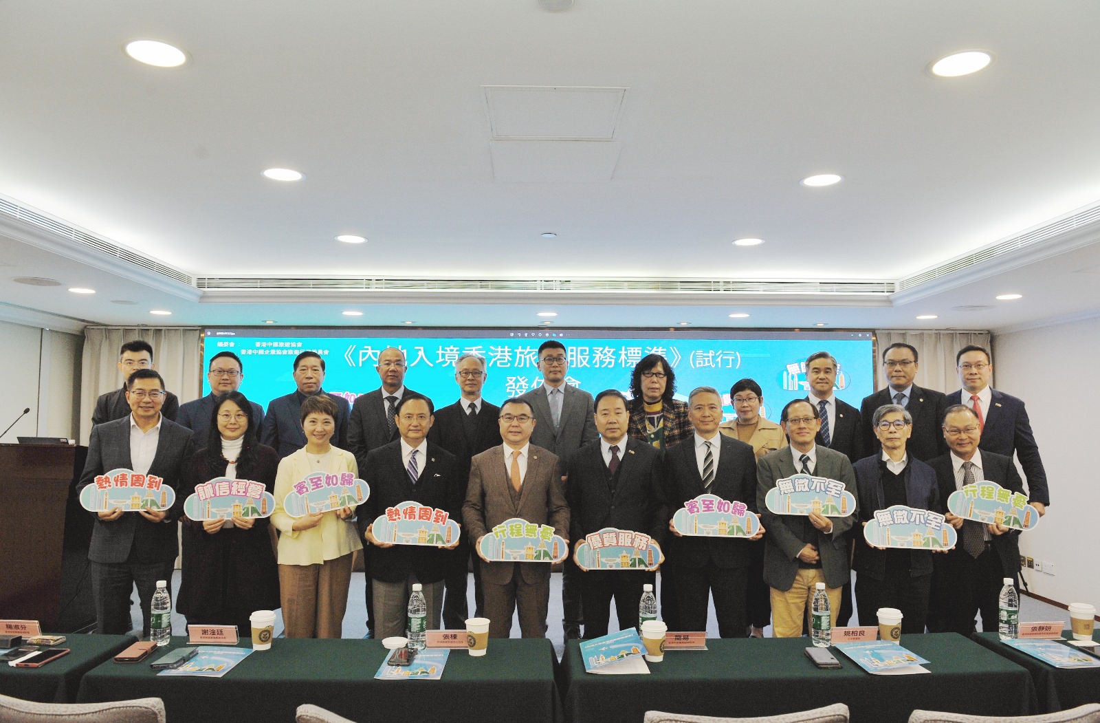 《服務標準》發佈會儀式今日上午11時在香港中旅集團15樓會議廳 (上環幹諾道中78-83號)舉行。亞洲旅遊交流中心張棟主任,香港中旅集團簡易副總經理,立法會姚柏良議員,香港旅遊發展局張靜妍高級經理,香港旅遊業議會謝淦廷副主席、楊淑芬總幹事,中旅旅行副總經理吳明源,香港中國旅遊協會吳熹安會長、辛聰金理事長共同主持發佈儀式。