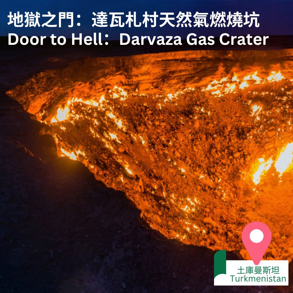 The Darvaza gas crater, also known as “the Door to Hell”, is a natural gas field located in Derweze, Turkmenistan. It is in the middle of the Karakum Desert.