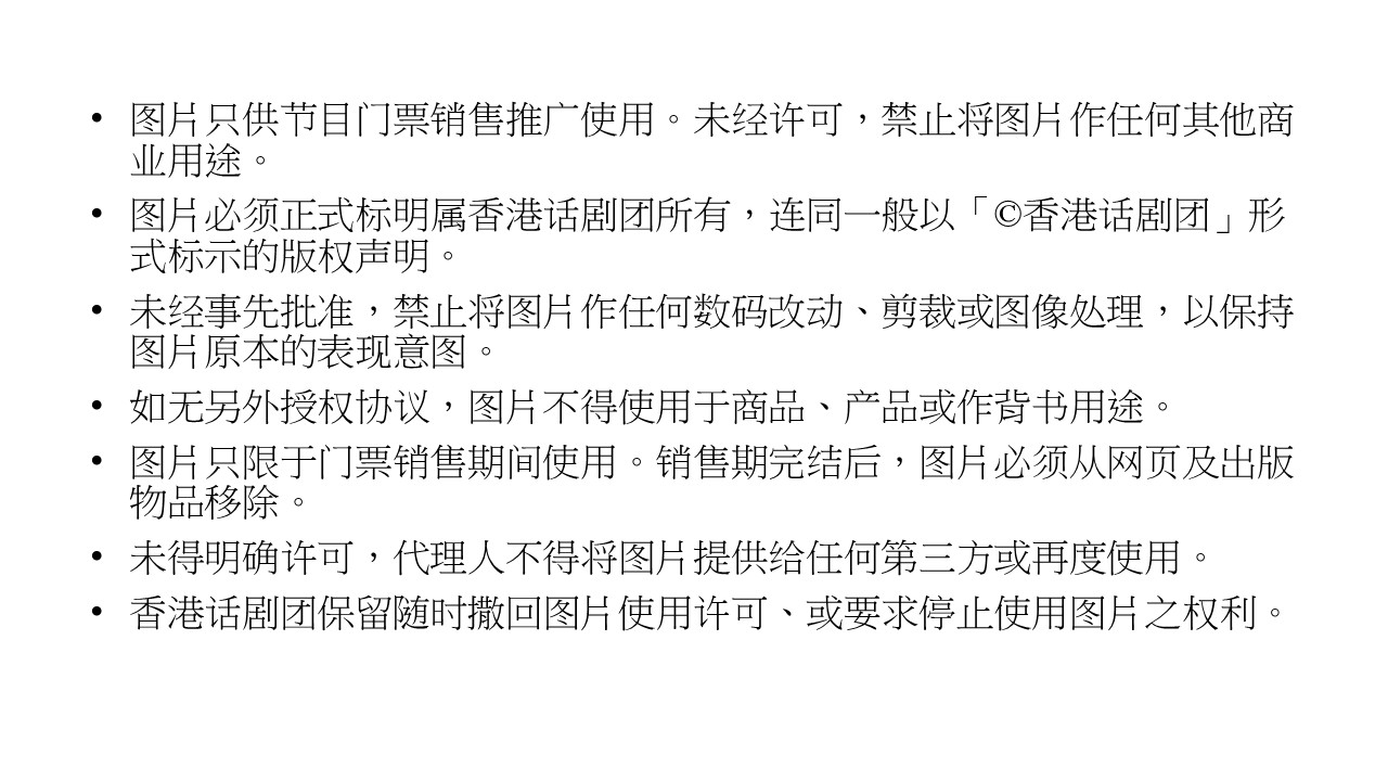 如需要使用节目内容及图片,可按下方图片下载,并请遵照香港话剧团指示。按此阅读指示。