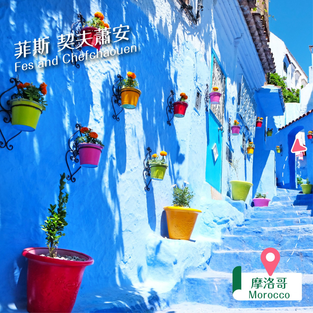 契夫萧安的蓝色山城,放眼一看尽是蓝白建筑,这里号称「摄影家天堂」,拍照都拍到手软。菲斯出产的宝蓝染料,让这座城市冠上蓝色皇城称号,当地古城被誉为世界最大迷宫。