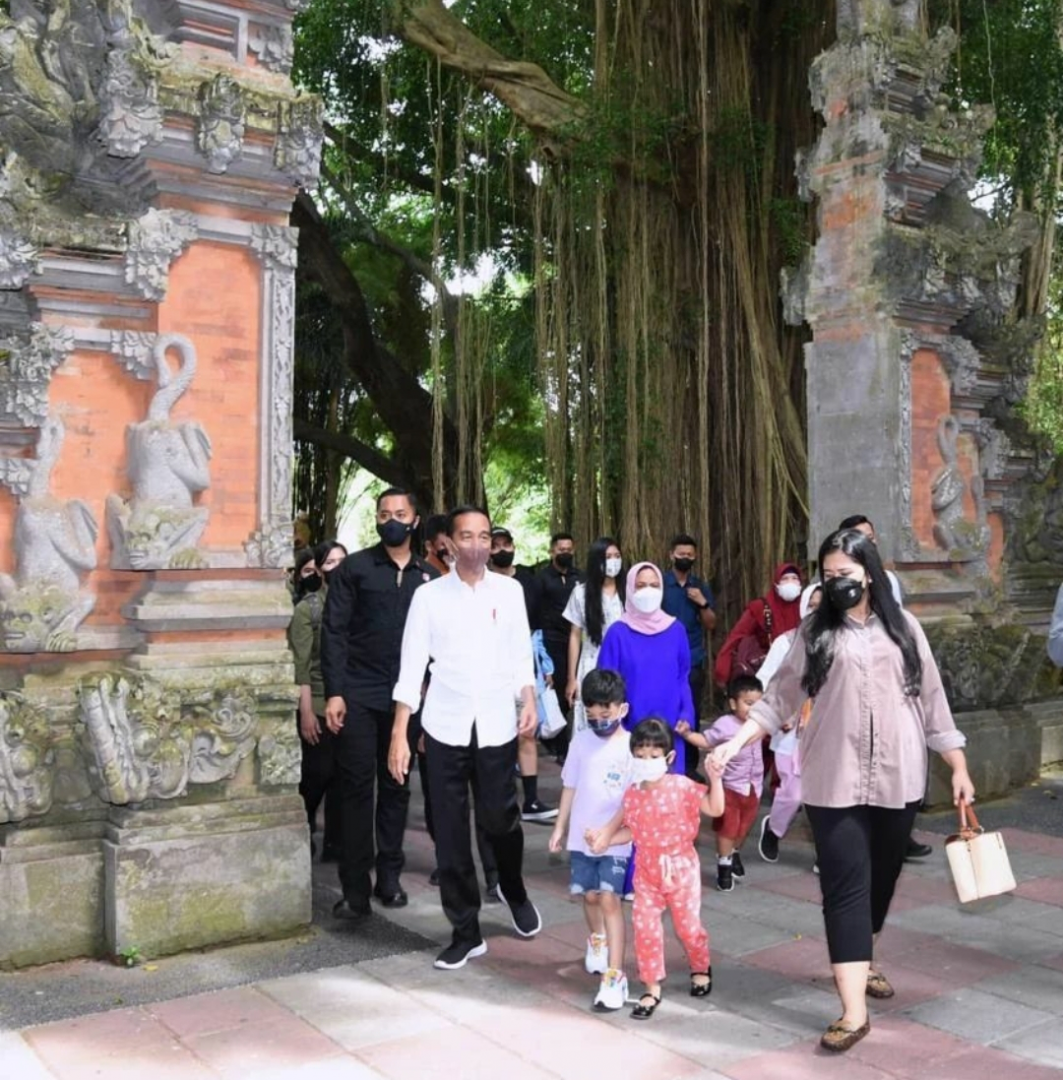 因為是帶孩子出行,佐科總統和他的家人的第一站是巴厘島的吉安雅(Gianyar),一行人到了巴厘島野生動物海洋公園 (Bali Safari & Marine Park),位於吉安雅 (Gianyar) ,飼養了多達50物種和數百類奇異珍貴的動物,包括受保護的野生動物,例如科莫多巨蜥、猩猩(Orangutan)和巴厘島八哥(Bali Starling)等,十分難得!在旅遊景點乘坐大型旅遊巴士時,總統的兩個孫子,輪流坐在佐科總統的腿上,顯得十分雀躍!
