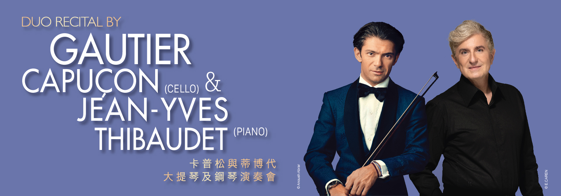 卡普松為當今最為傑出的大提琴家之一,他以豐富的藝術表現力、精湛的演奏技巧而受到高度讚譽。蒂博代被譽為當今最優秀的鋼琴家之一,三十年來,在世界各地演出,已錄製超過 50 張專輯。 今次卡普松與長期音樂合作夥伴的蒂博代聯手,為香港樂迷帶來精湛悅耳的音樂會。