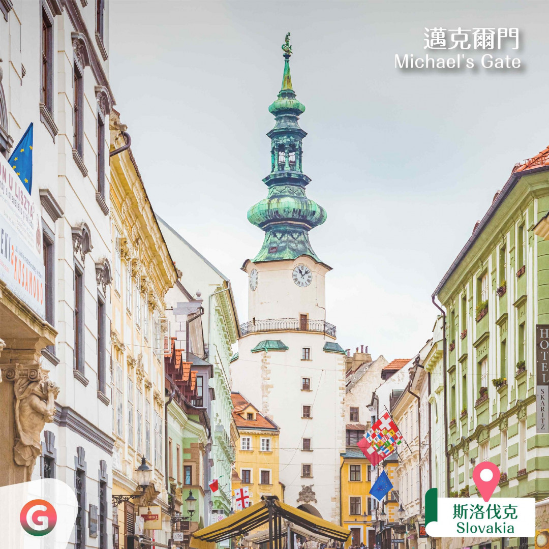 布拉提斯拉瓦四座城門中,唯一僅存、保存得完好的城門,在城門底下有個圓環,標示出與歐洲各大城市的距離👀。