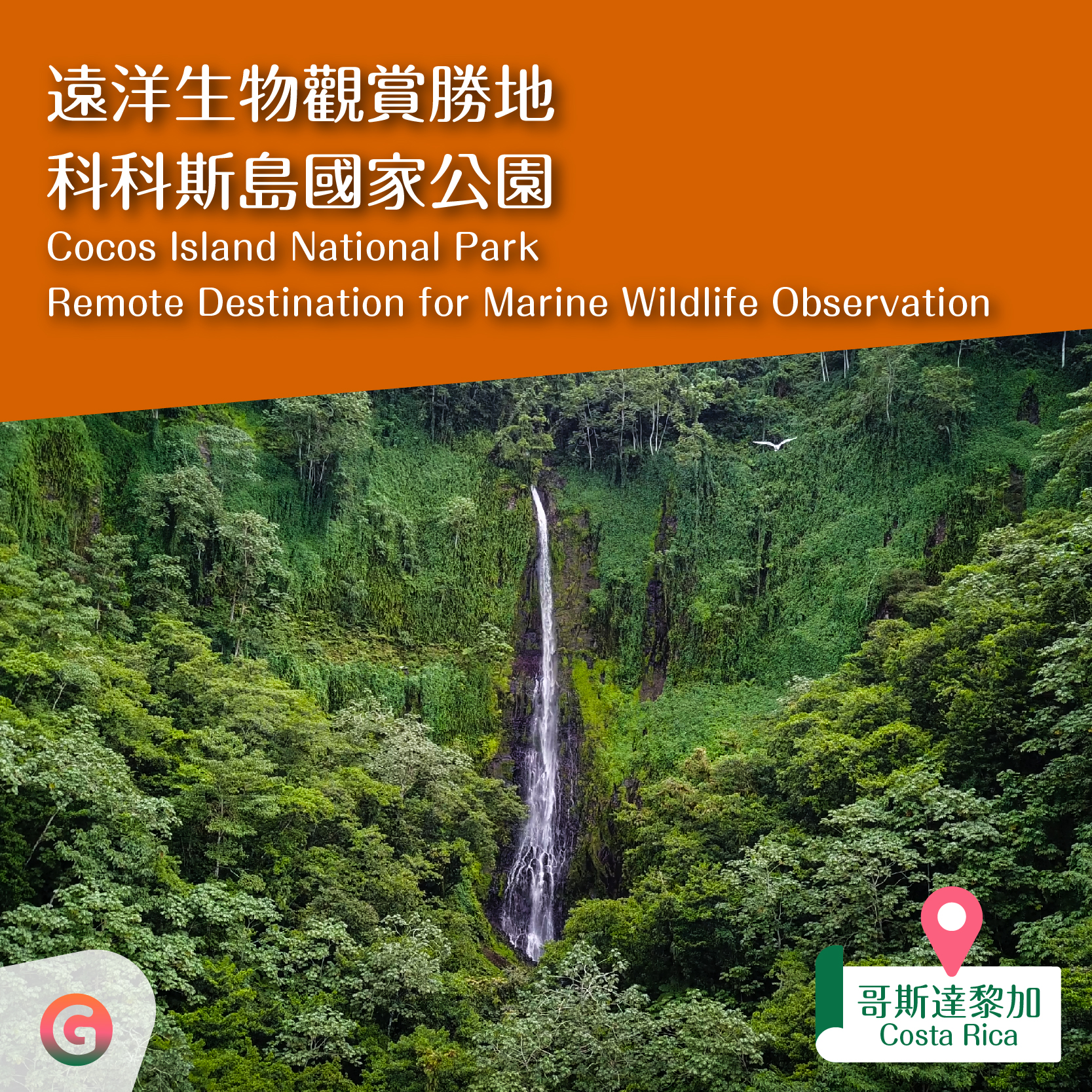 哥斯達黎加的科科斯島國家公園,是東太平洋上唯一擁有熱帶雨林的島嶼,接近北赤道逆流,孕育出無與倫比的自然美景同豐富的生物多樣性,更於1997年成為世界遺產之一。
