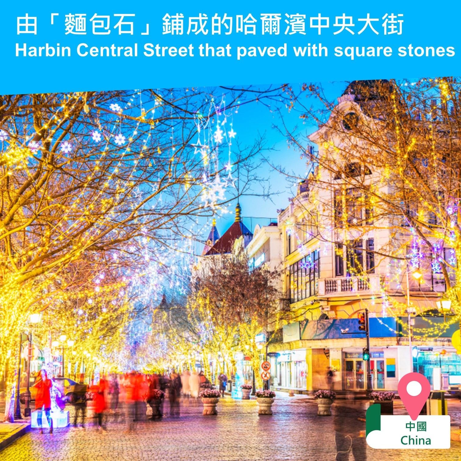 哈爾濱中央大街全長近一千五百米,由「麵包石」鋪成,是亞洲最長的步行街,也是中國第一條商業步行街。中央大街沿途共有逾七十座歐式建築,折衷主義、巴洛克式、文藝復興等,讓人彷如置身歐洲,對建築藝術愛好者來說更是目不暇給。